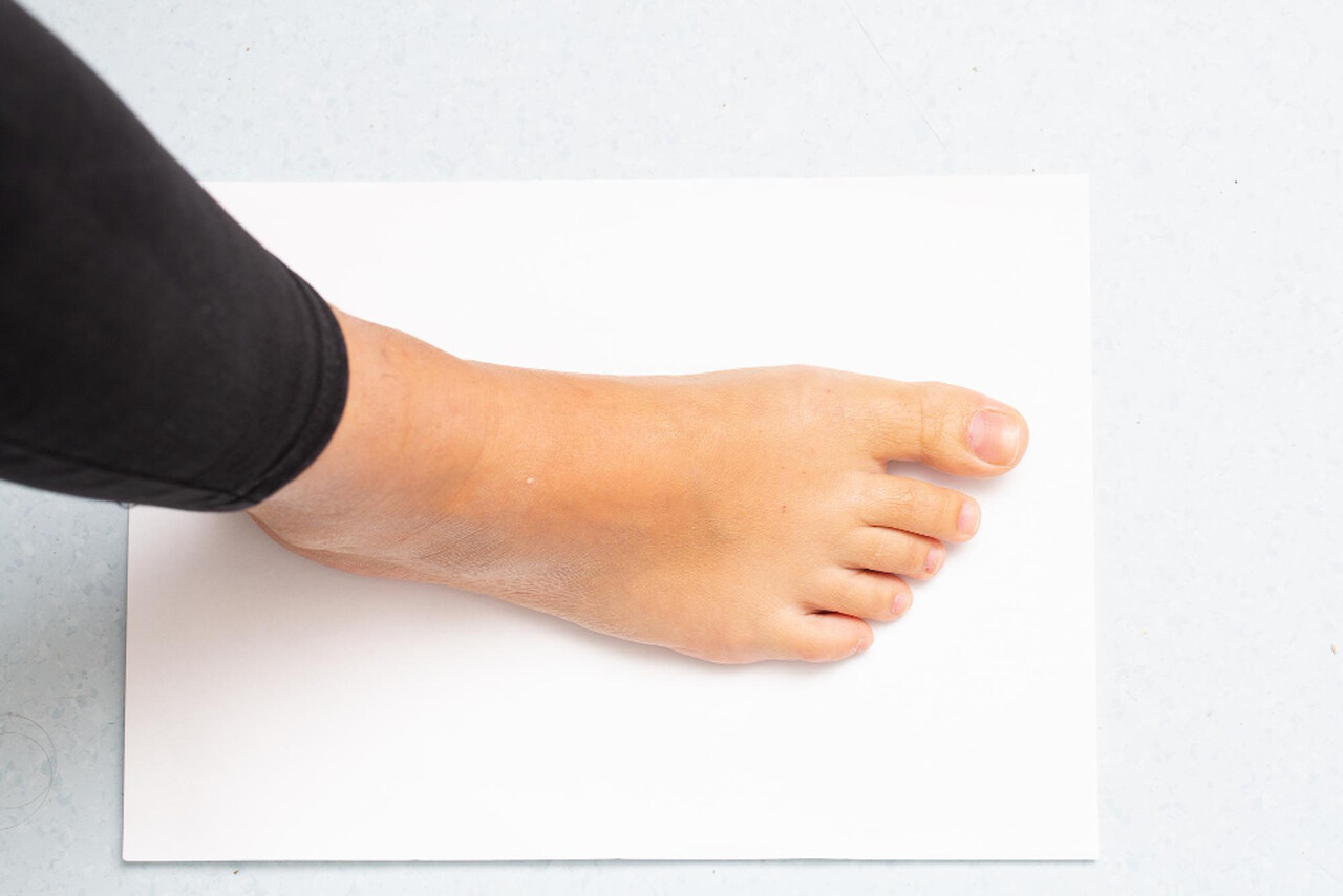 - Sundejte chodidlo z listu papíru a změřte vzdálenost mezi těmito body, opět pomocí pravítka nebo krejčovského metru.